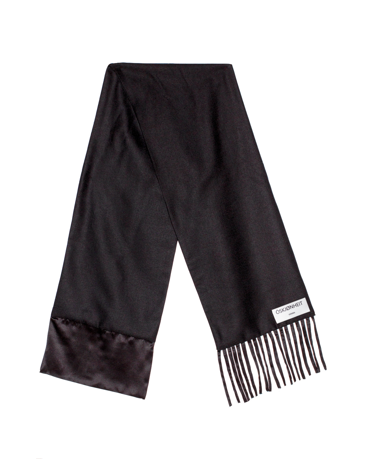 Deadstock Wool scarf with silk detailing in black.